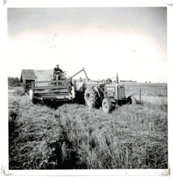 Kari puimassa puimurilla (Sampo 10 vm. 1967 ja Valmet vm.1965), Ylätalon pellolla vuonna 1969.